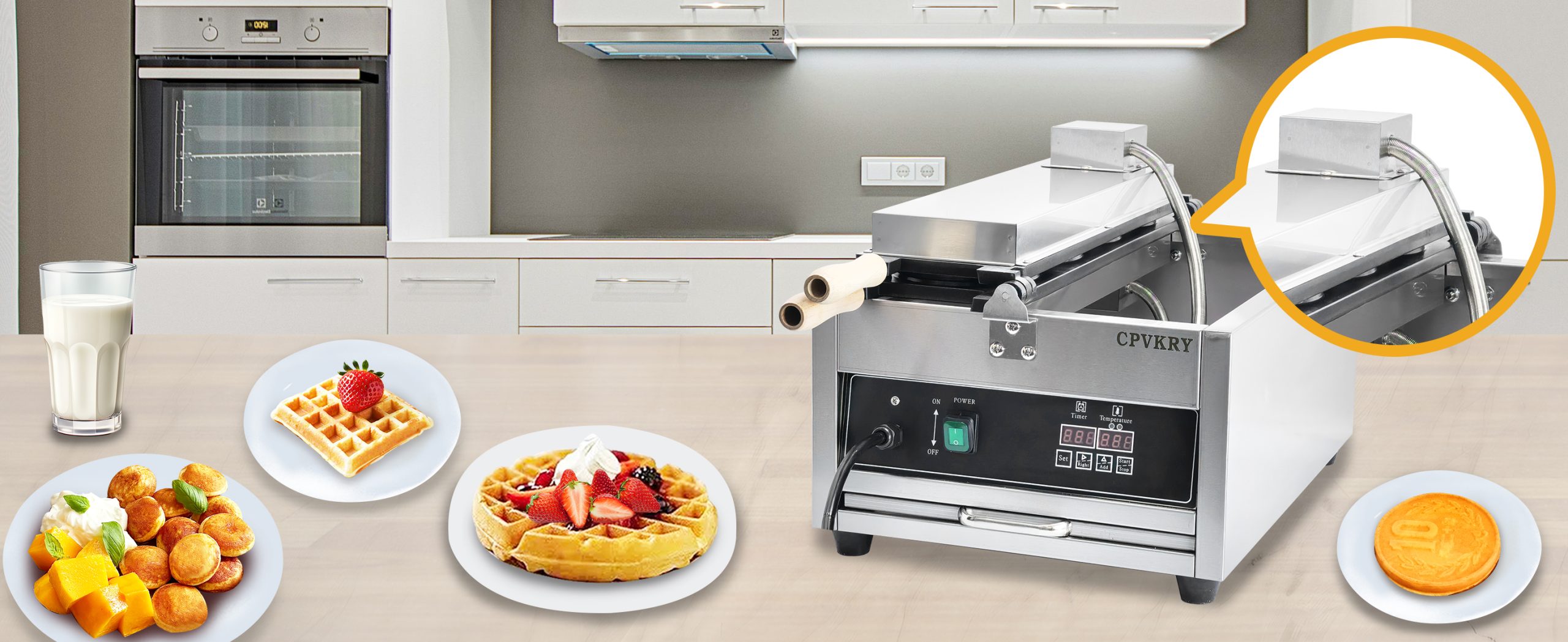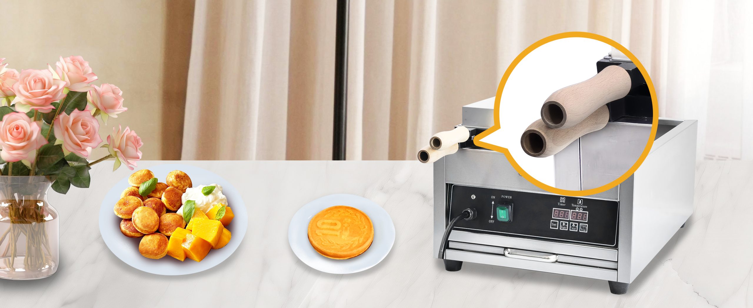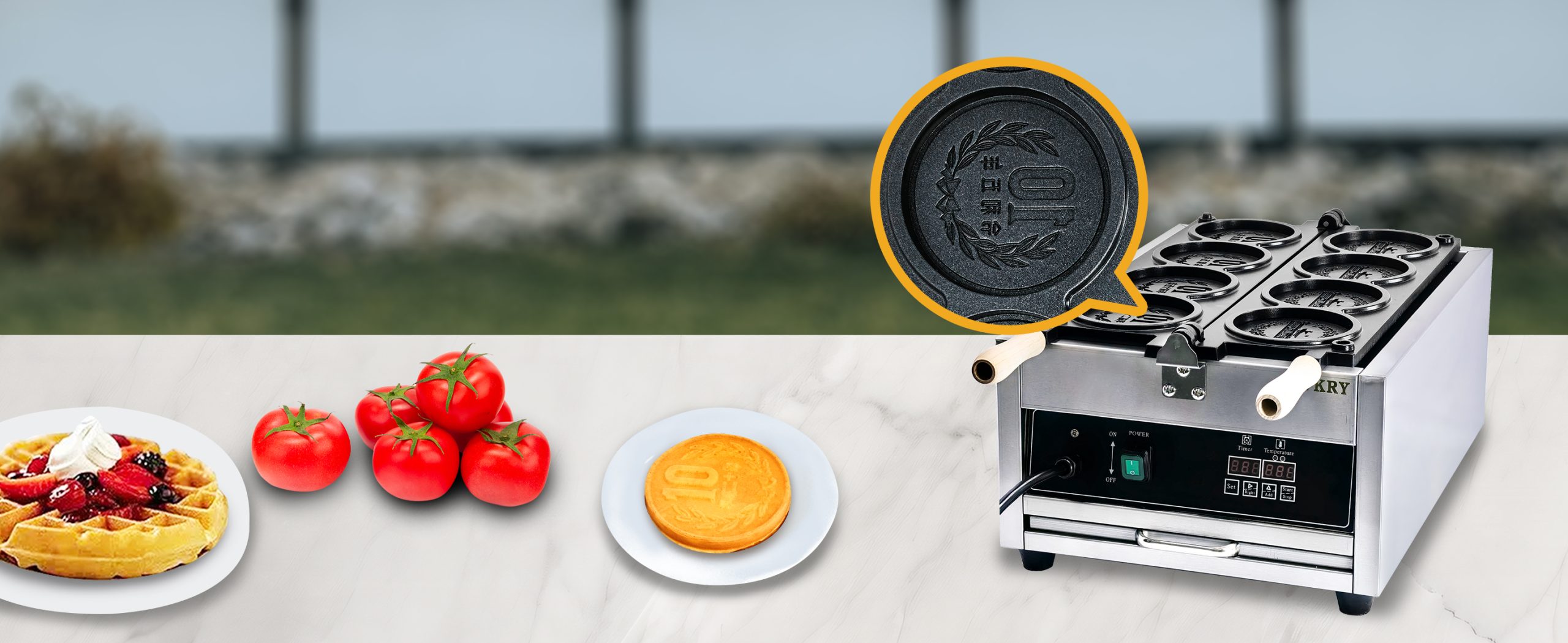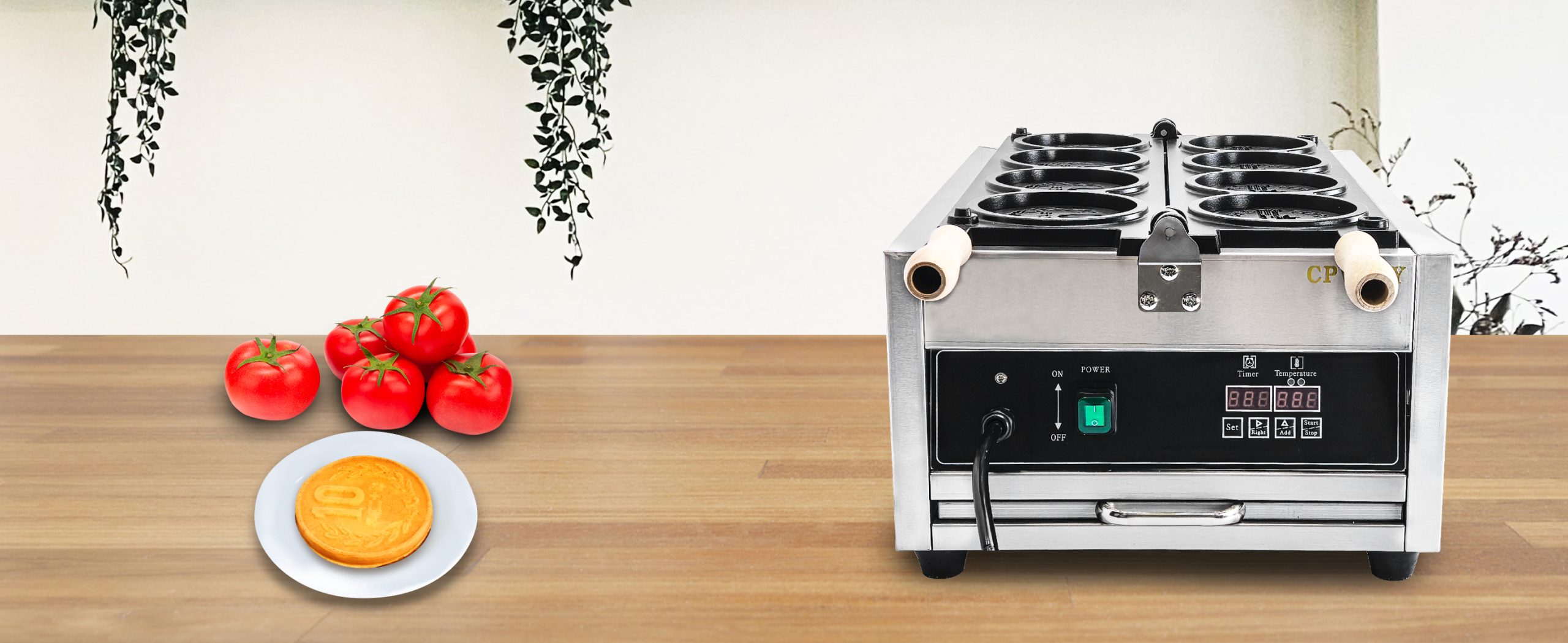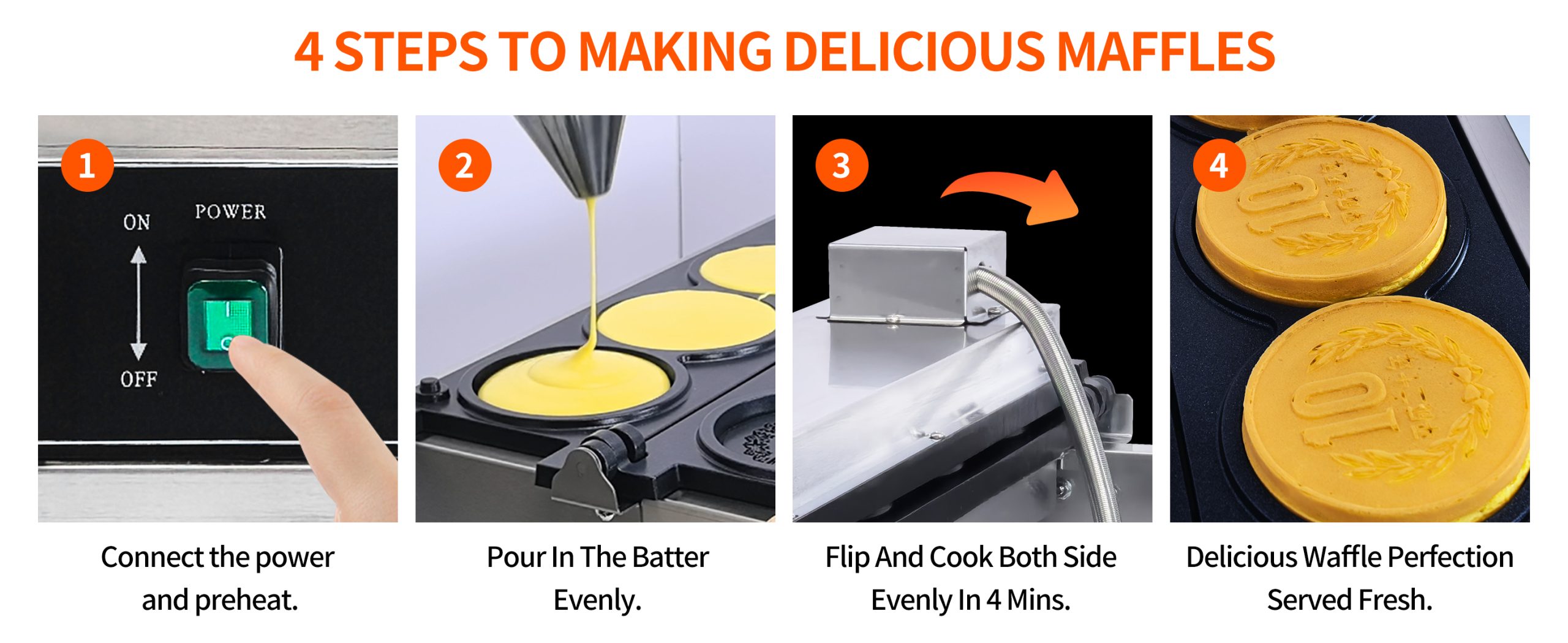 Baking delicious LED Japanese coin shaped waffles. This commercial grade waffle machine is getting extremely popular all over the world because of its high efficiency and excellent results. Baking tasty jam or ice cream waffles with independent heat control extremely easy.