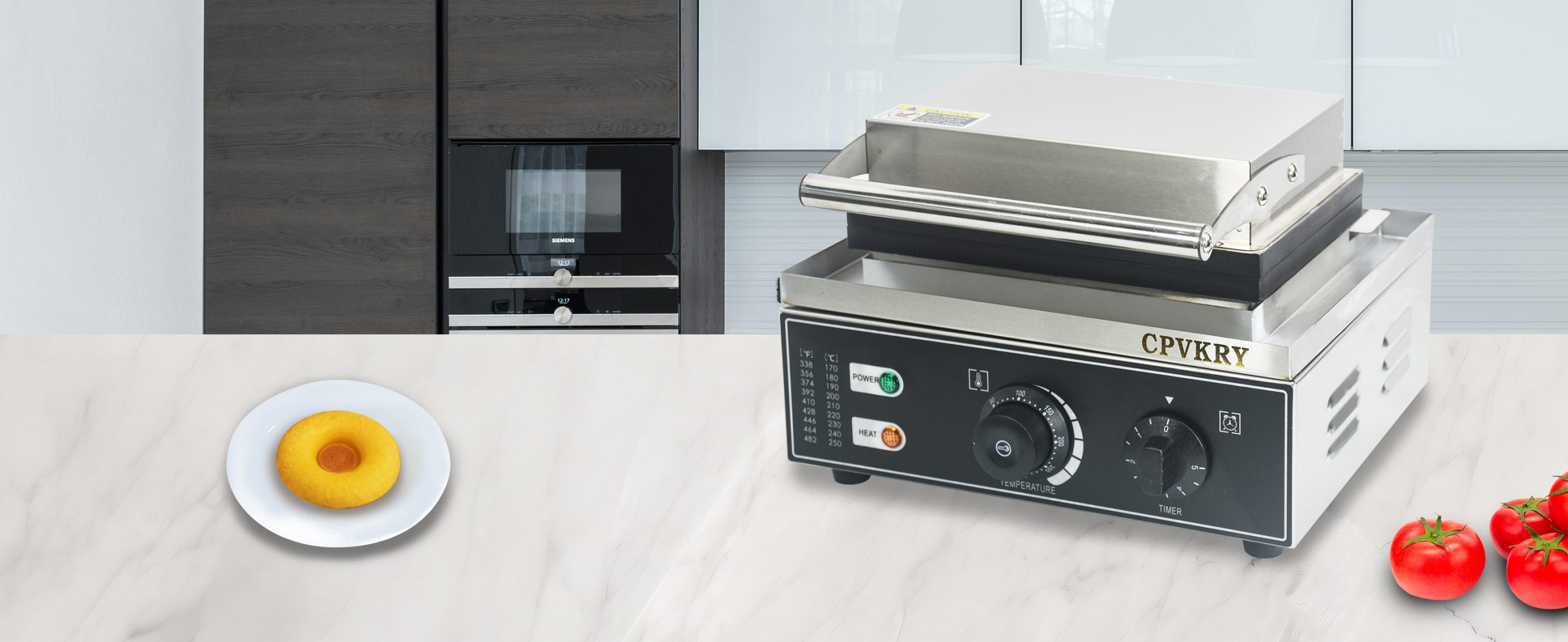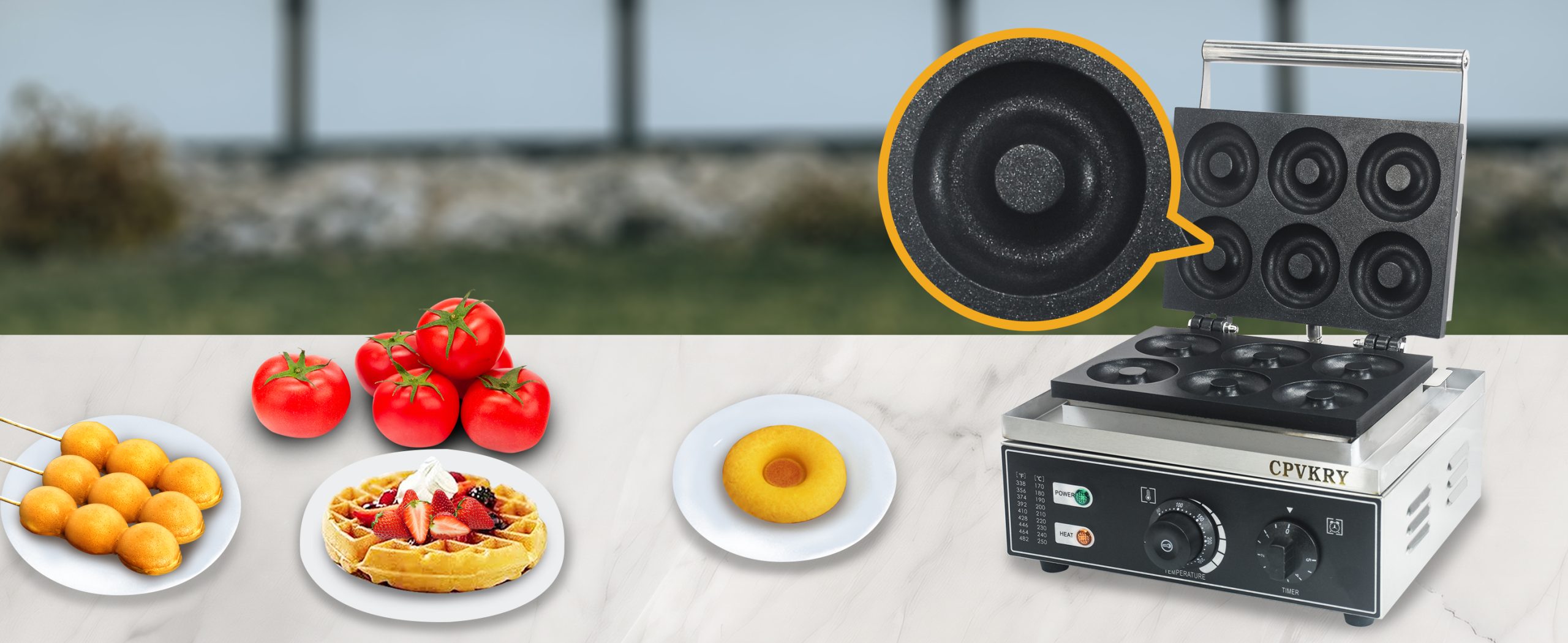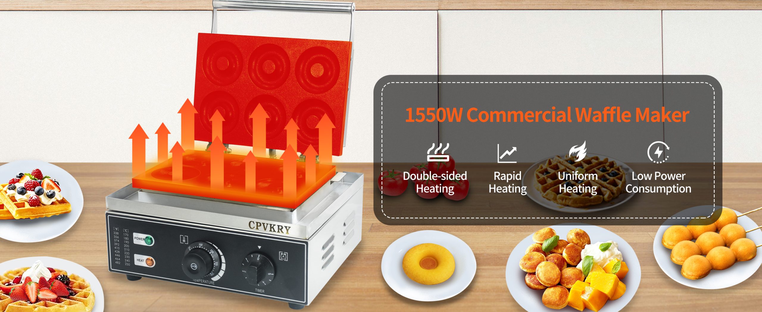 This unique industrial doughnut waffle maker professional produces rotundity waffles with unique textures. It is equipped with a manually controlled thermostat and timer for more precise control, comfortable handles, You can use it at home with your family, or in cafe bars, restaurants, canteens, snack stations, etc.