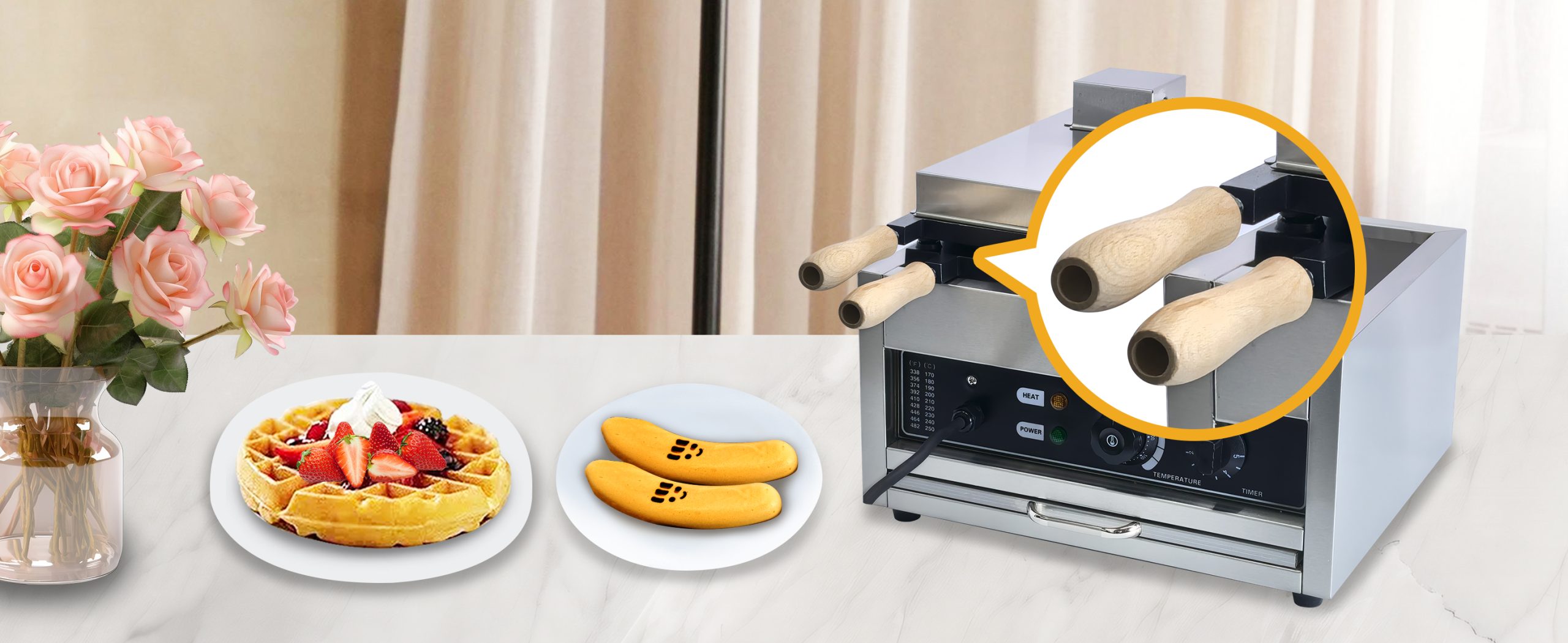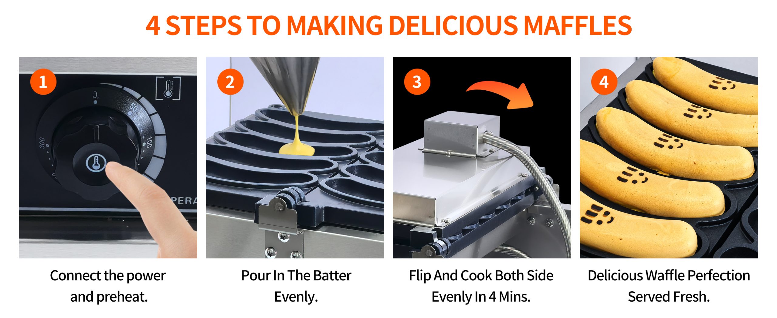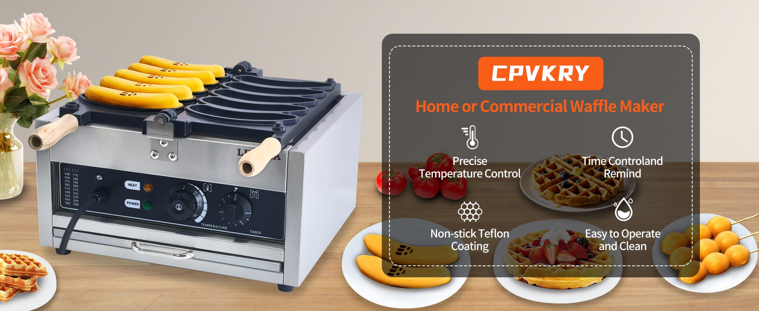 Make use of one of the best banana shaped waffle maker designed This commercial grade waffle machine is getting extremely popular all over the world because of its high efficiency and excellent results. Baking tasty jam or ice cream waffles with independent heat control extremely easy.