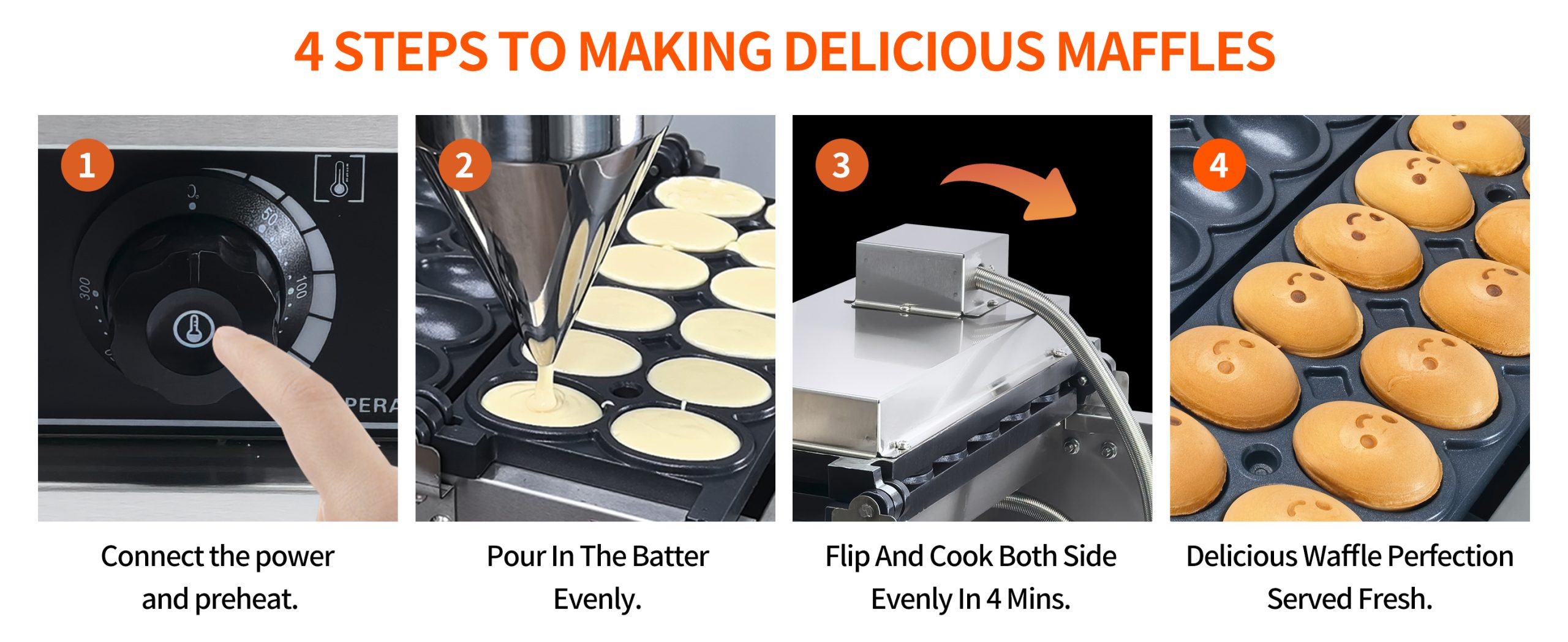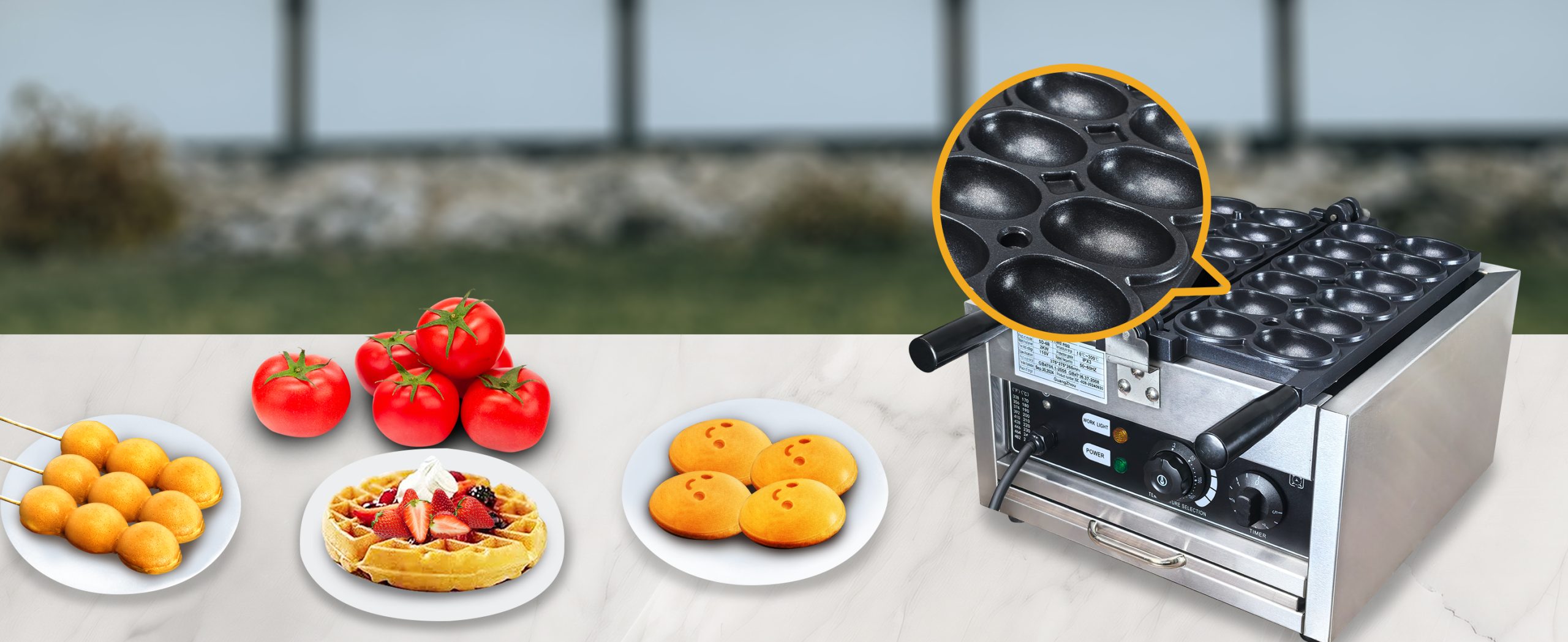Baking delicious Egg Shaped Waffle Maker. This commercial grade waffle machine is getting extremely popular all over the world because of its high efficiency and excellent results. Baking tasty jam or ice cream waffles with independent heat control extremely easy.