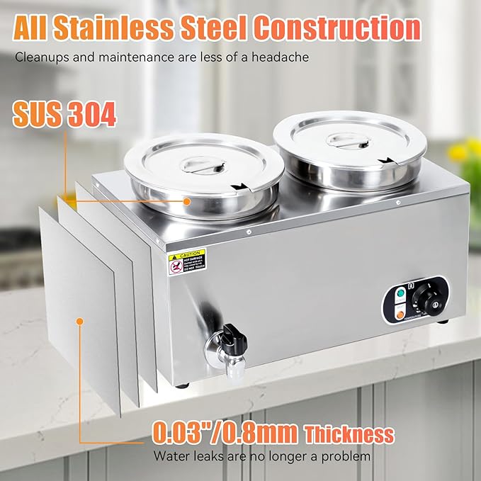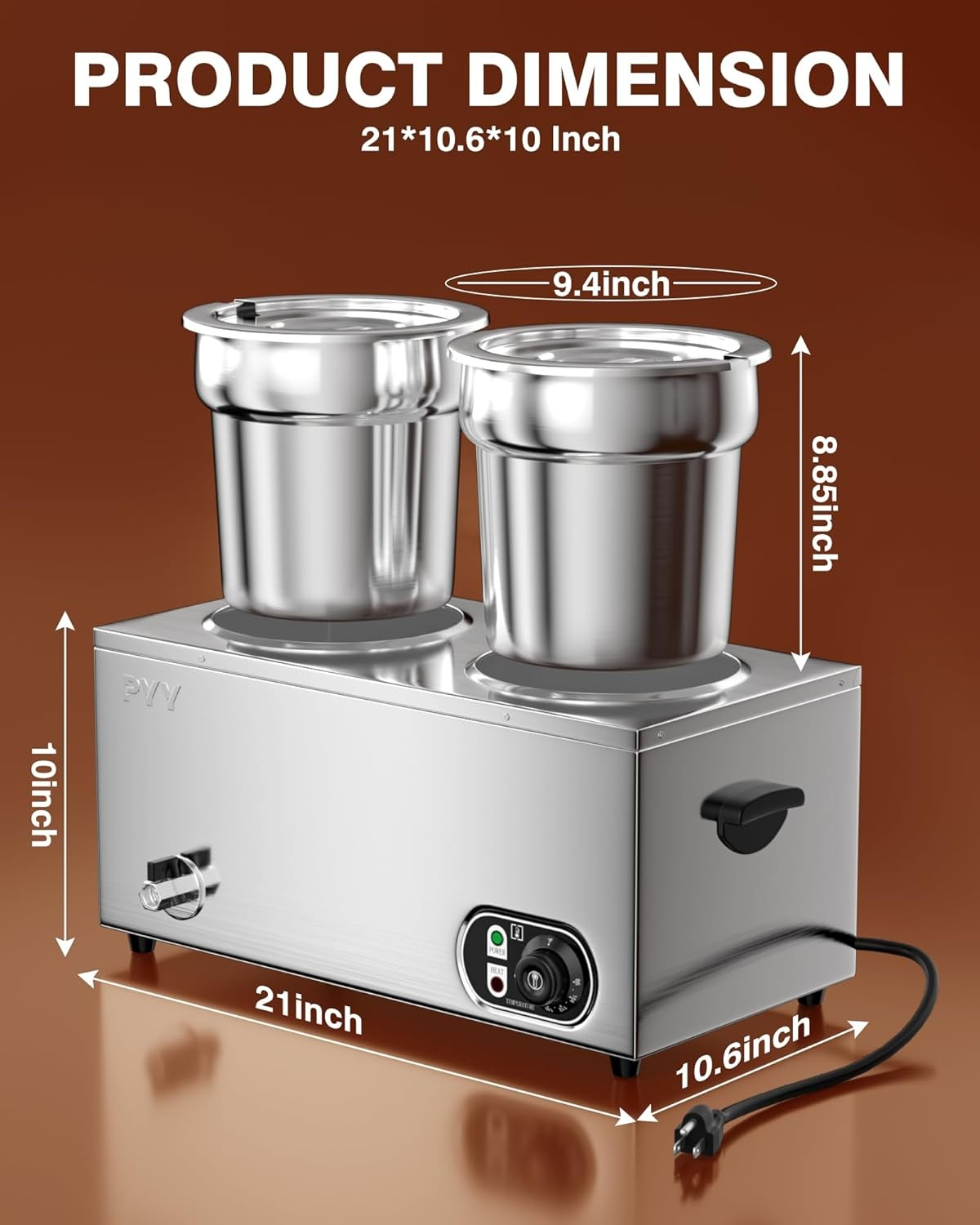 Commercial 4L Bain Marie Stainless Steel Soup Pot 2-Pot Electric Source for Hotel & Restaurant Catering Food Heater Supplies