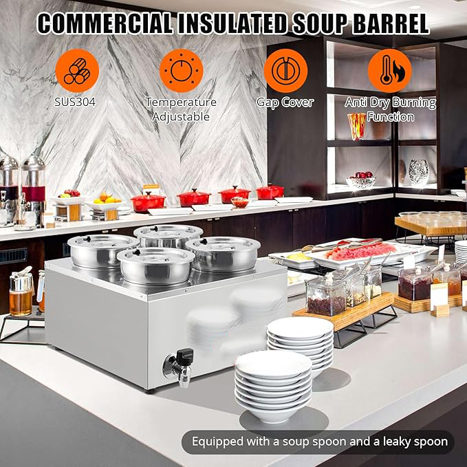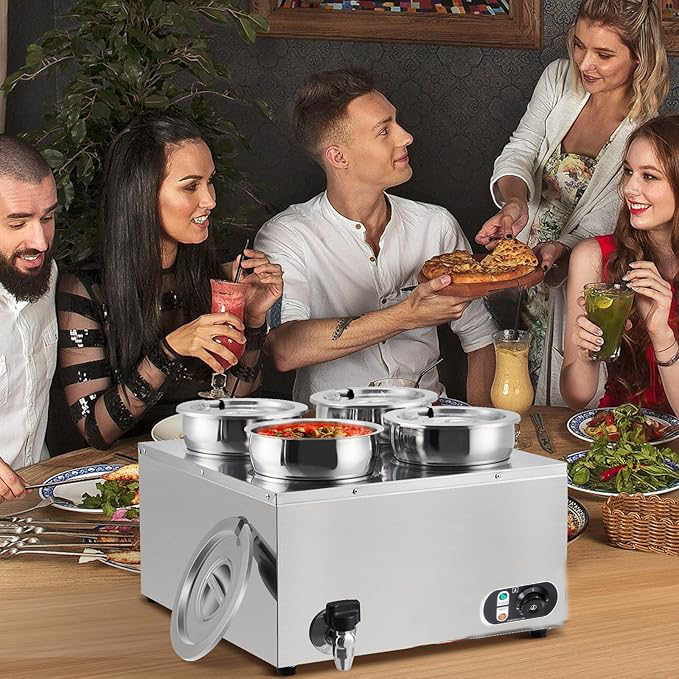 Commercial 4L Stainless Steel Electric Bain Marie Food Heater 1500W 4 Pots Chocolate Melting Furnace for Hotel & Restaurant Use