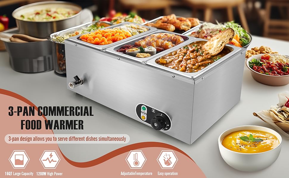 * The buffet warmer come with a drainage faucet for convenient water releasing.