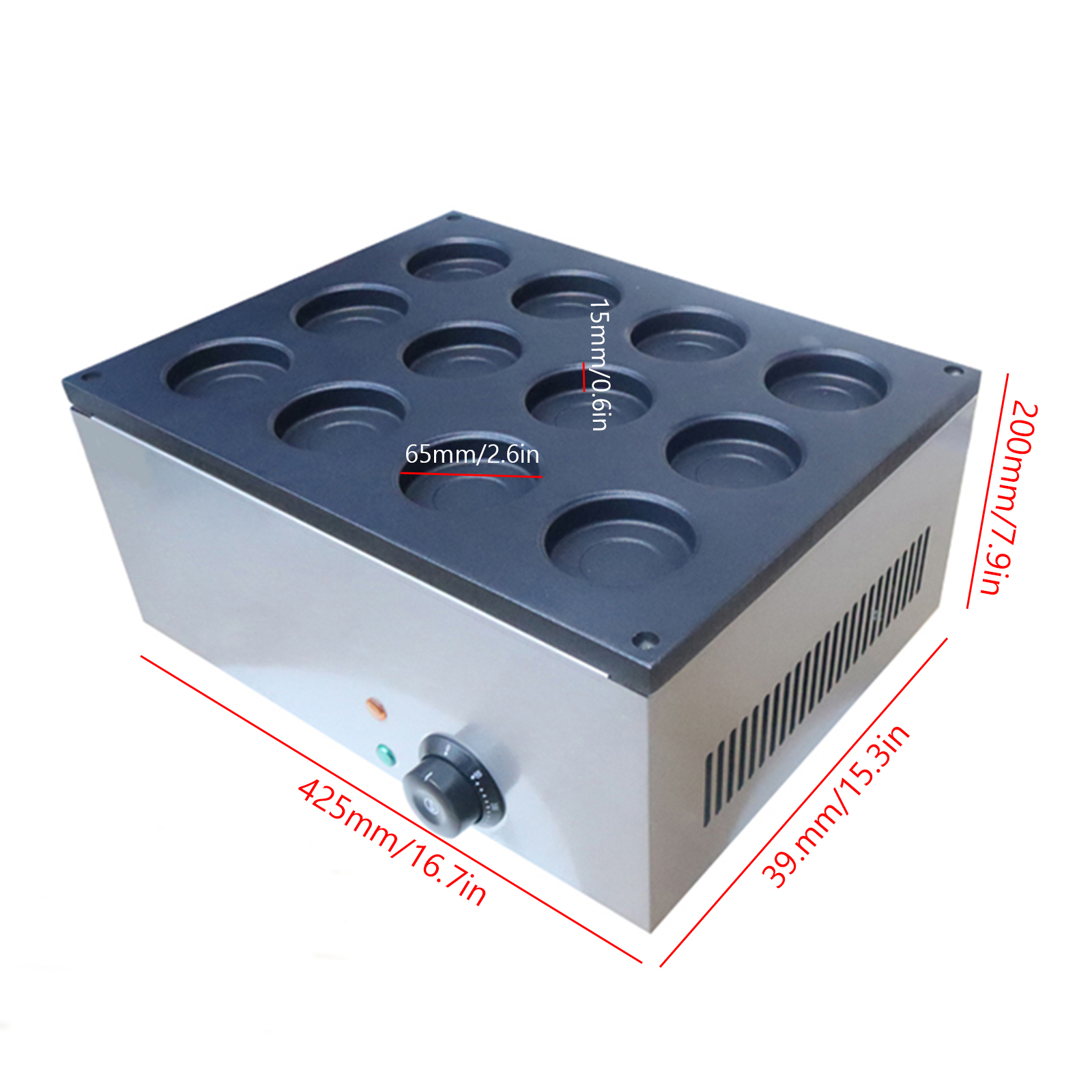 Use this commercial equipment to cook 12 Japanese red bean cakes, also known as obanyaki. The machine is made of durable materials and ready for extensive use in bars, restaurants and other food-related businesses.