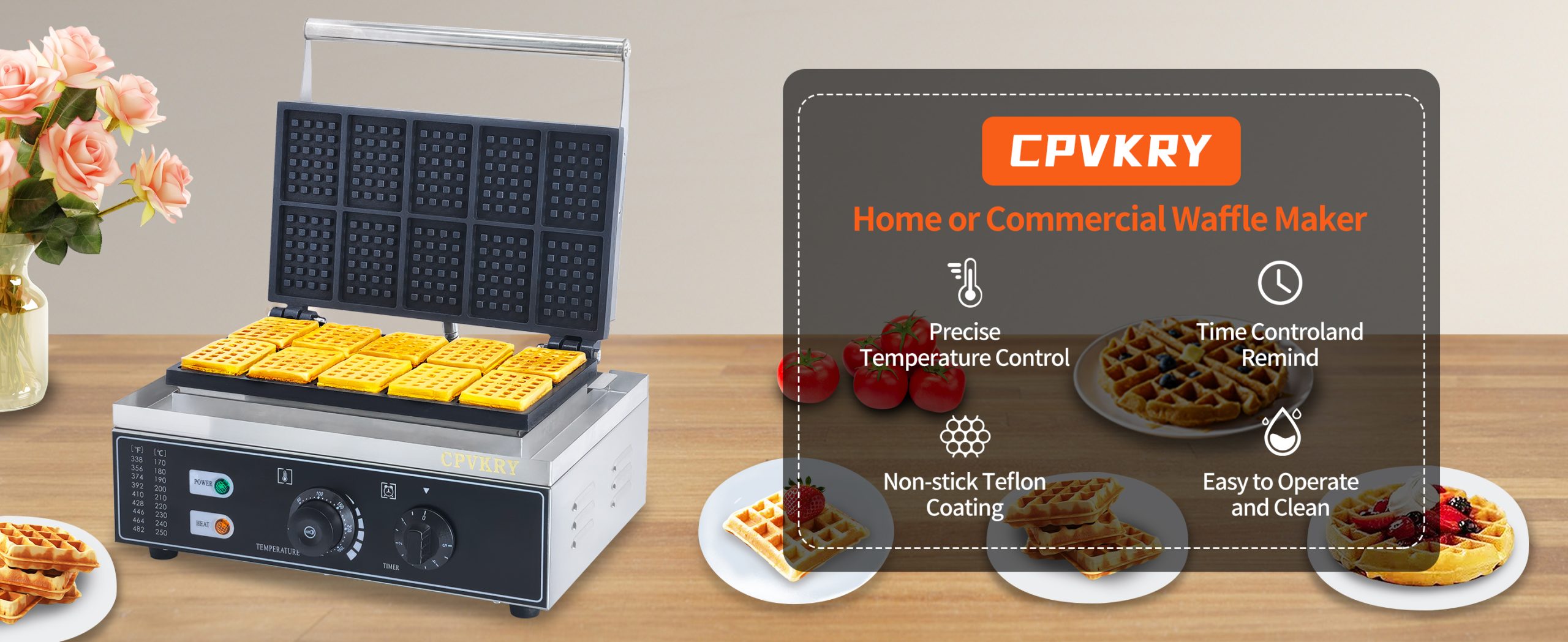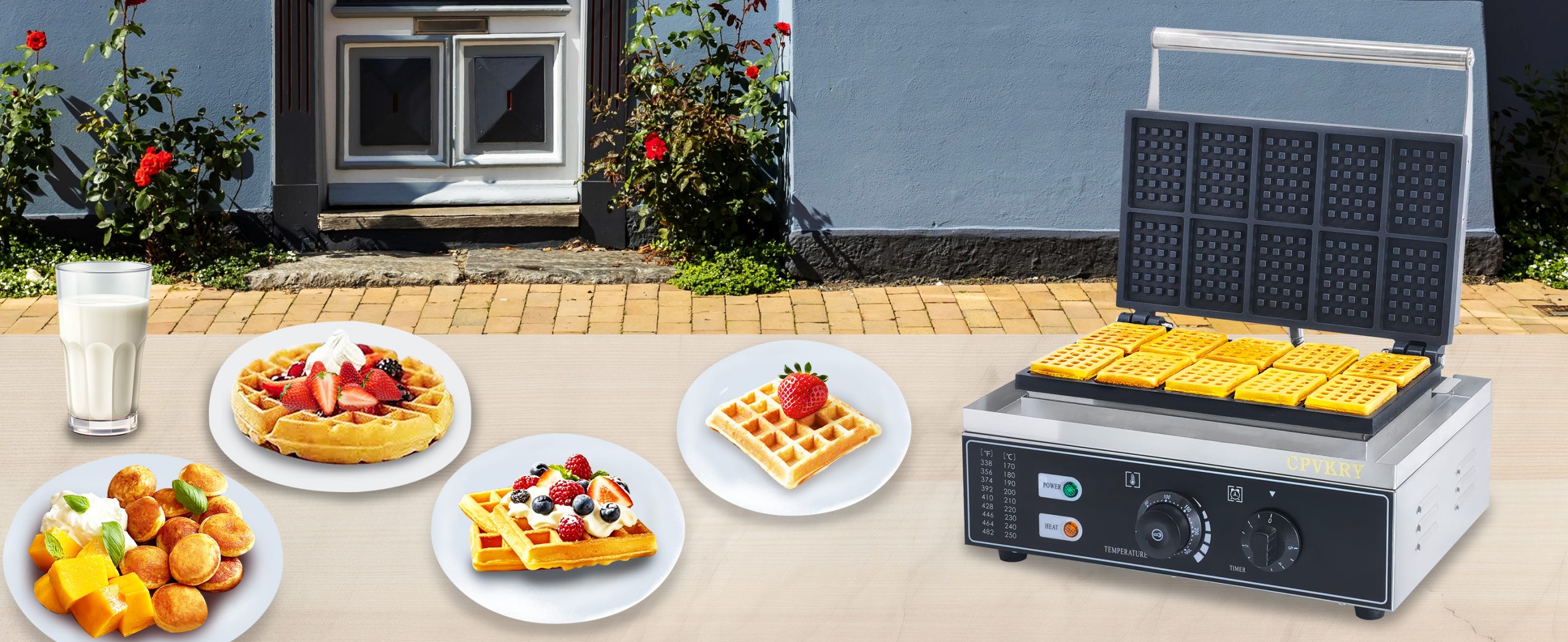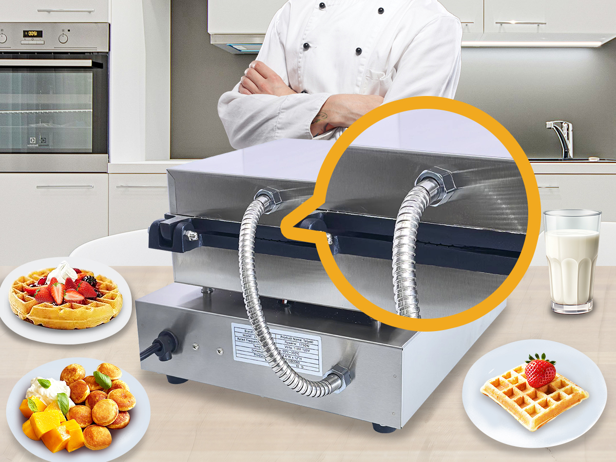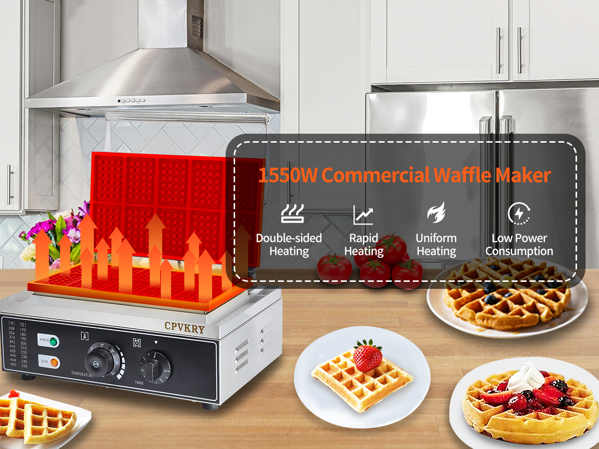 Baking delicious Rectangle shaped waffles. This Home or Commercial grade waffle machine is getting extremely popular all over the world because of its high efficiency and excellent results. Baking tasty jam or ice cream waffles with independent heat control extremely easy.