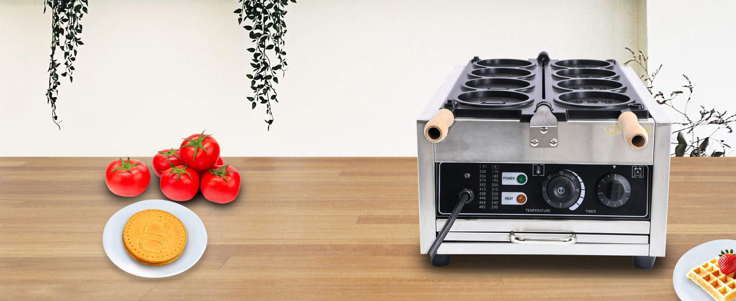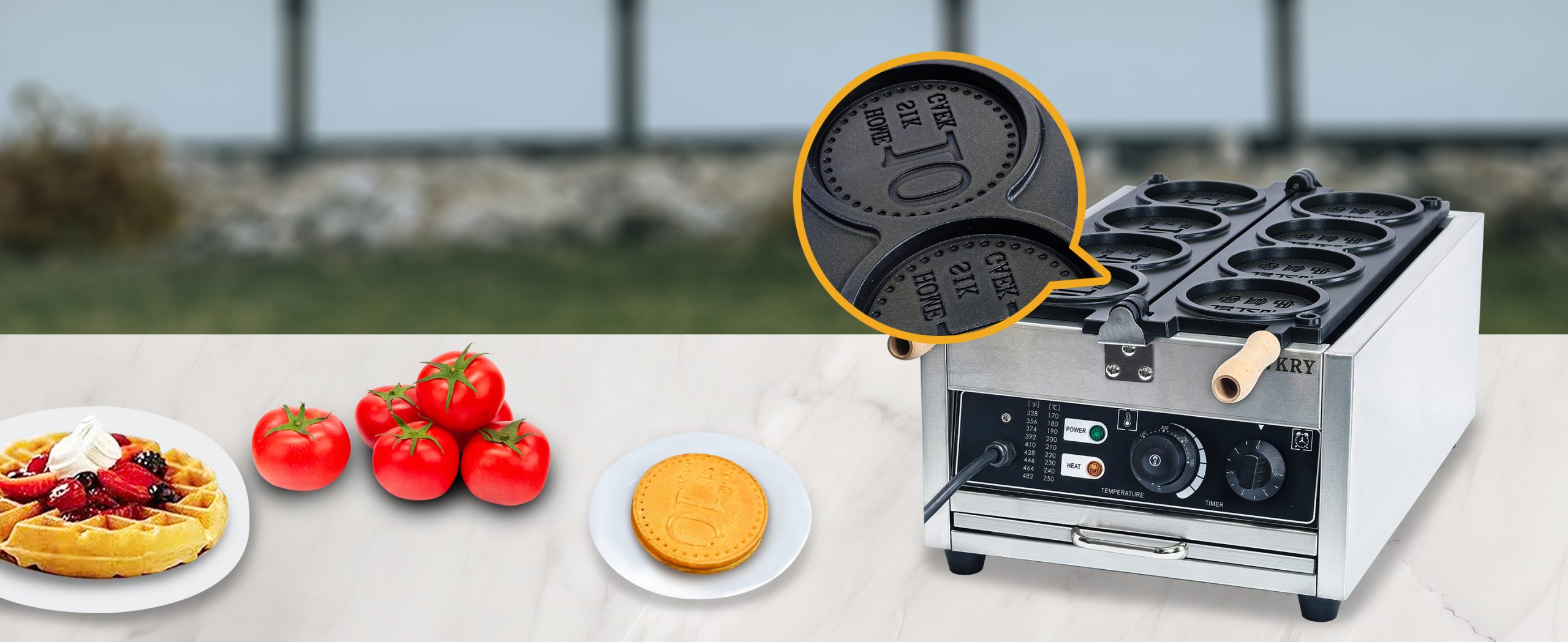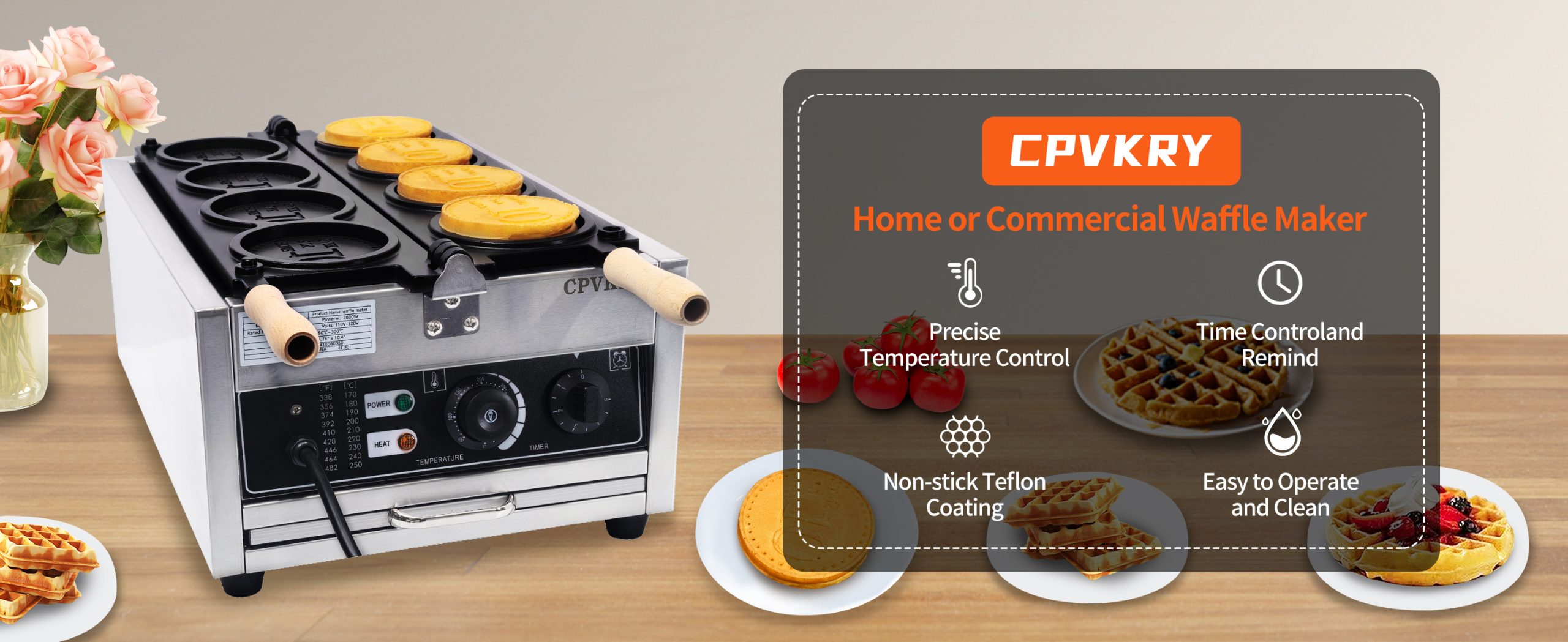 Baking delicious Korean coin shaped waffles. This commercial grade waffle machine is getting extremely popular all over the world because of its high efficiency and excellent results. Baking tasty jam or ice cream waffles with independent heat control extremely easy.