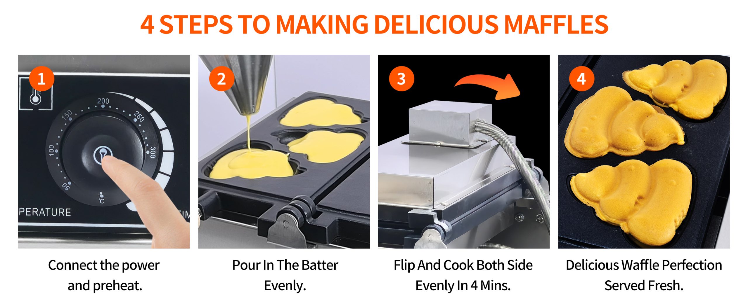 Baking delicious Poop Emoji Waffle waffles. This commercial grade waffle machine is getting extremely popular all over the world because of its high efficiency and excellent results. Baking tasty jam or ice cream waffles with independent heat control extremely easy.