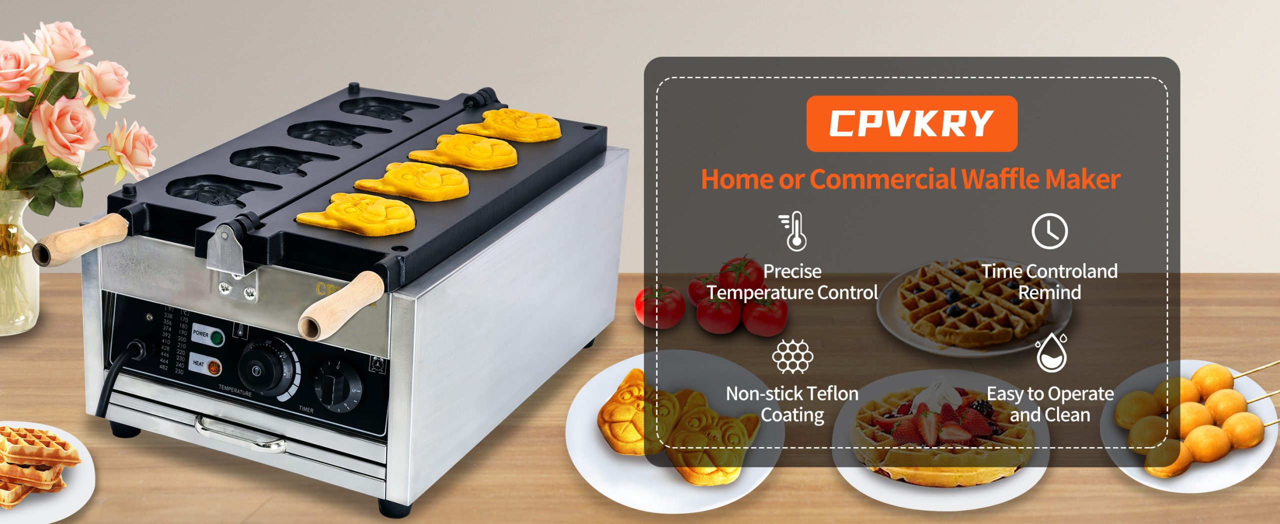 Make use of one of the best Dog headed waffle maker designed This commercial grade waffle machine is getting extremely popular all over the world because of its high efficiency and excellent results. Baking tasty jam or ice cream waffles with independent heat control extremely easy.
