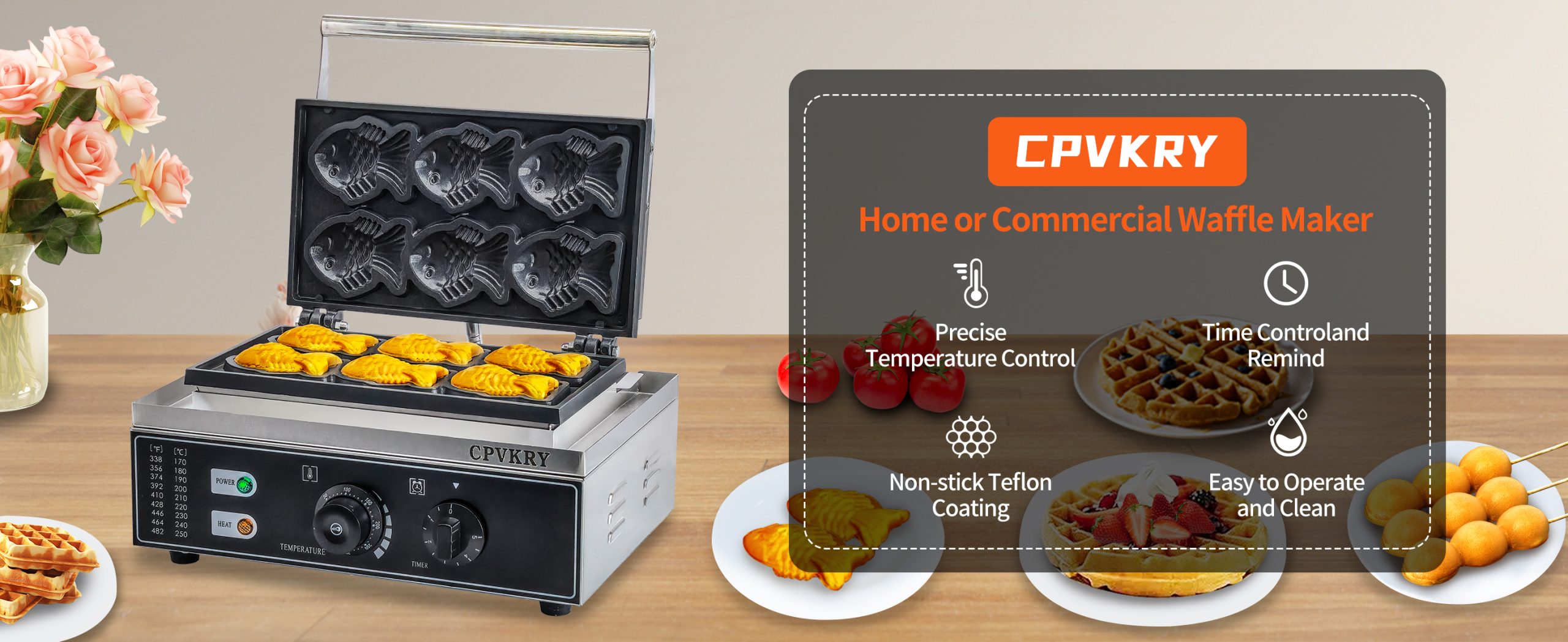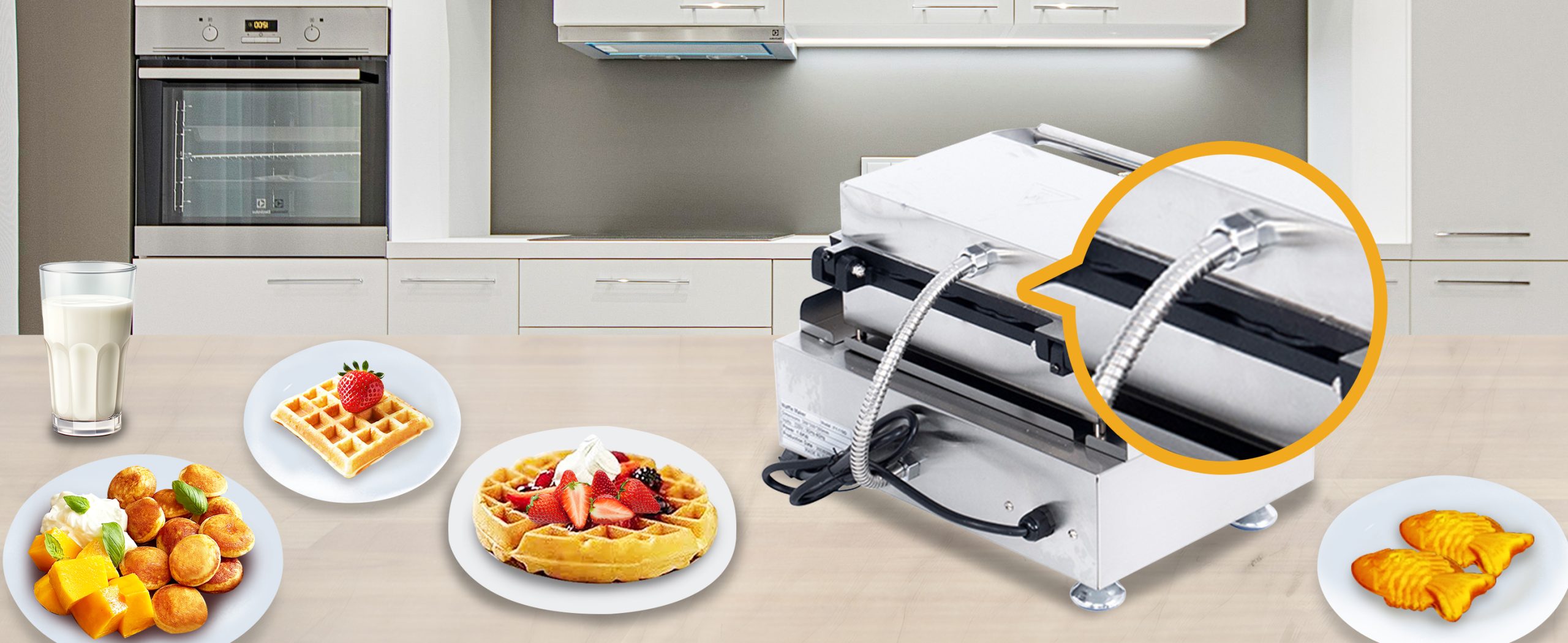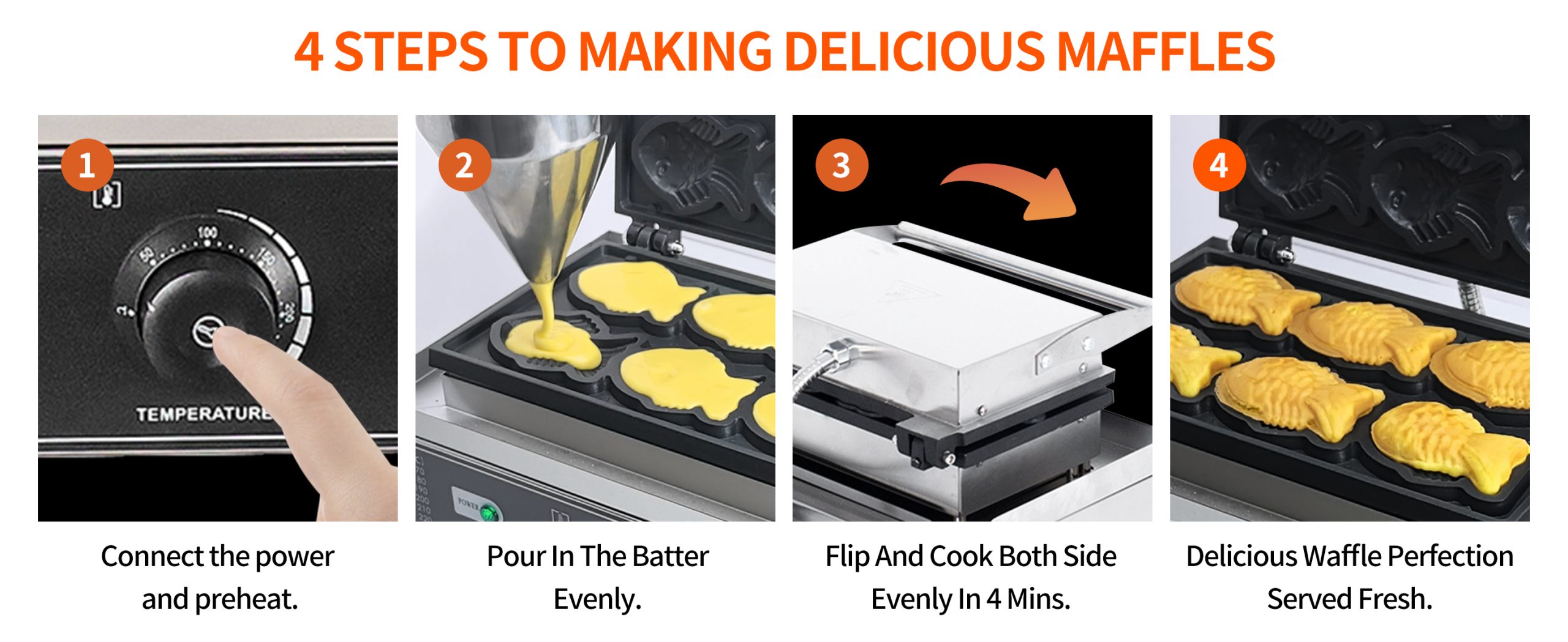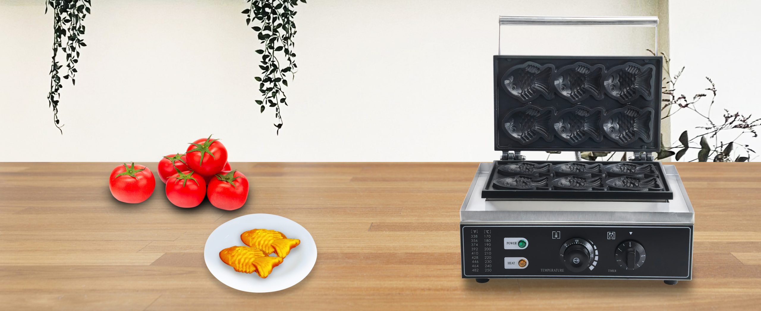 Baking delicious Fish-Shaped Waffle waffles. This commercial grade waffle machine is getting extremely popular all over the world because of its high efficiency and excellent results. Baking tasty jam or ice cream waffles with independent heat control extremely easy.