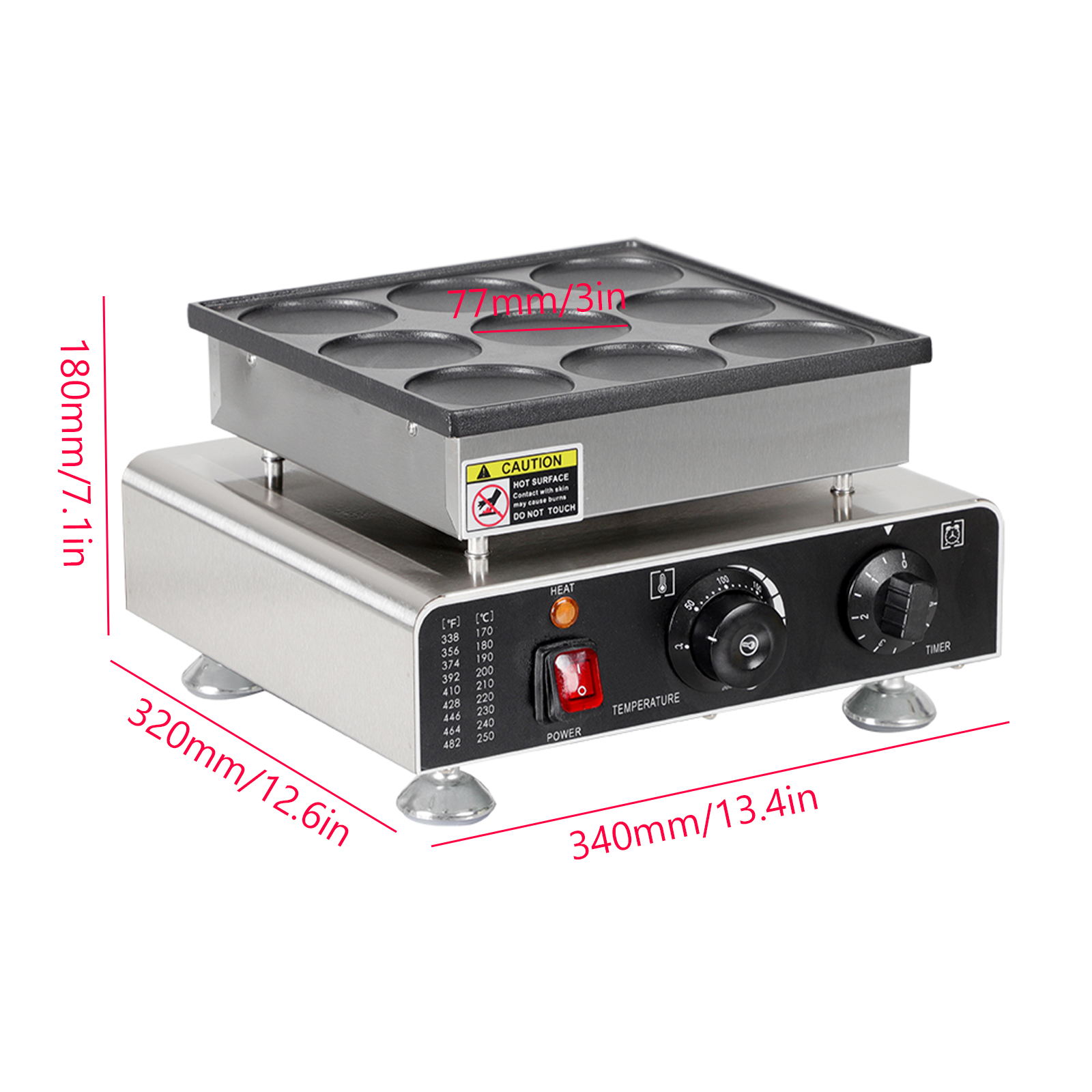 This unique industrial Mini Dutch Pancake Maker professional produces Round waffles with unique textures. It is equipped with a manually controlled thermostat and timer for more precise control, comfortable handles, You can use it at home with your family, or in cafe bars, restaurants, canteens, snack stations, etc.