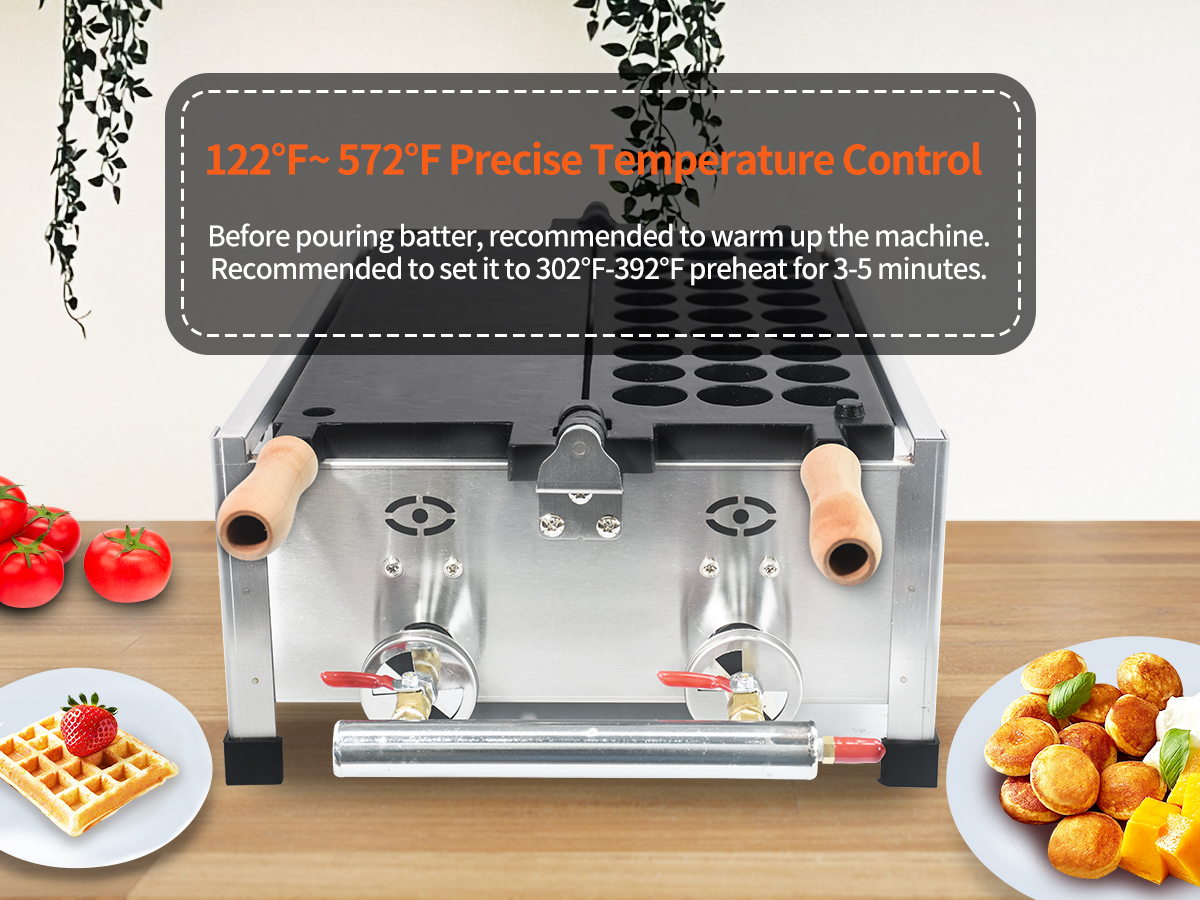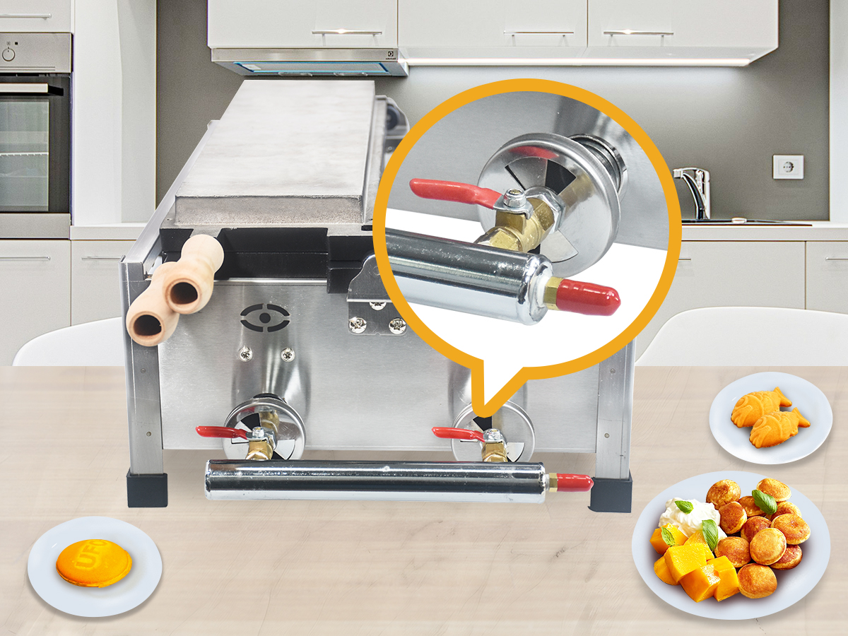 Experience effortless waffle creation with our Gas-Powered Waffle Maker. Designed for direct use on gas stoves, it features smooth control knobs for easy adjustment of the flame intensity, translating to precise heat management. Achieve perfect results across a wide temperature range (approx. 50°C to 300°C) – ideal for everything from gentle warming to crispy baking. Visual flame indication provides clear feedback on the heating status.