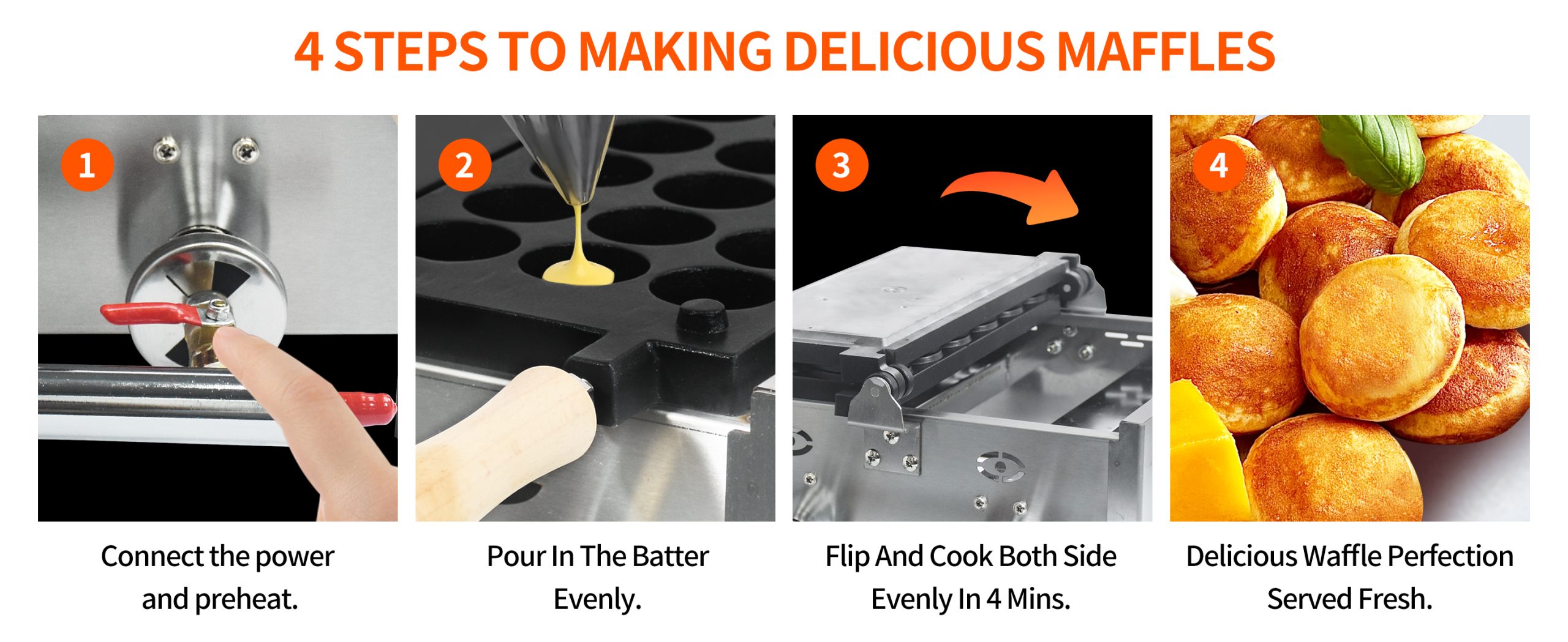 This unique industrial Hemispherical waffle maker professional produces Spherical waffles with unique textures. It is equipped with an intelligent digital control thermostat and timer,comfortable handles, and 180-degree rotated mechanism for efficient processing. You can use it at home with your family, or in cafe bars, restaurants, canteens, snack stations, etc.