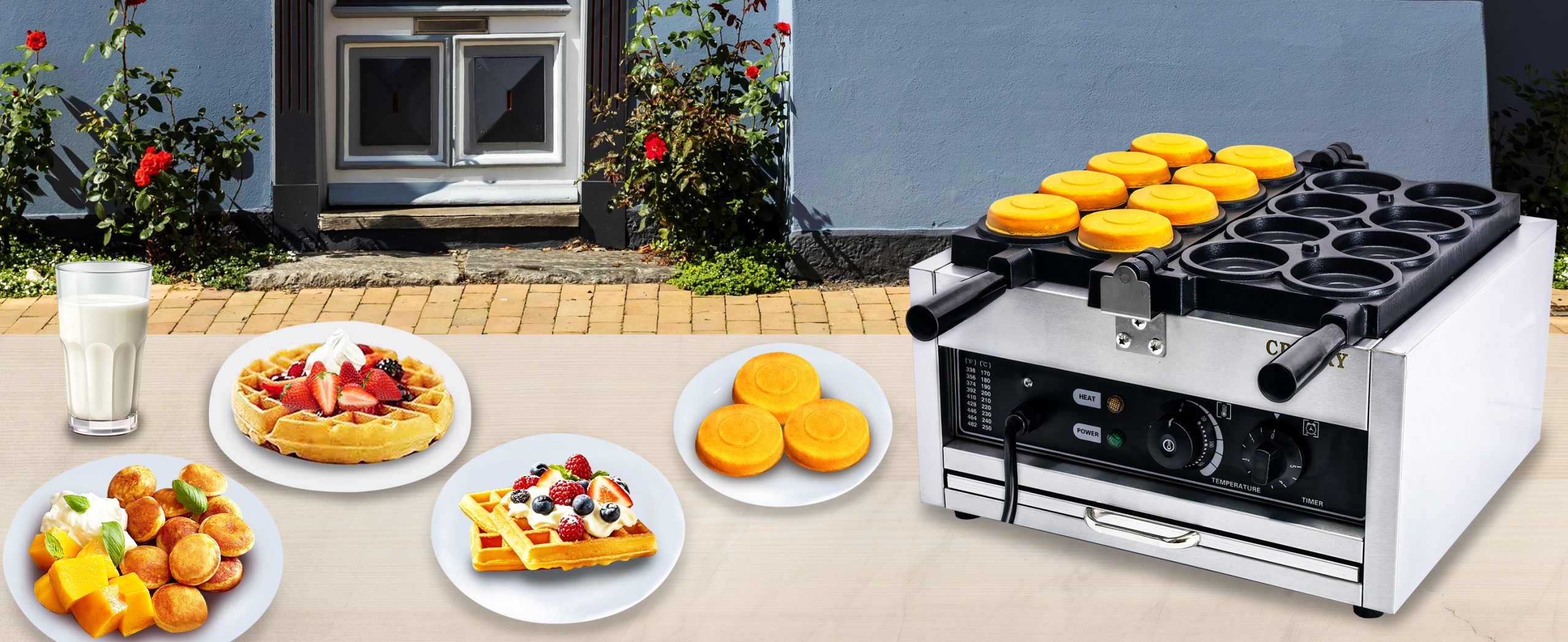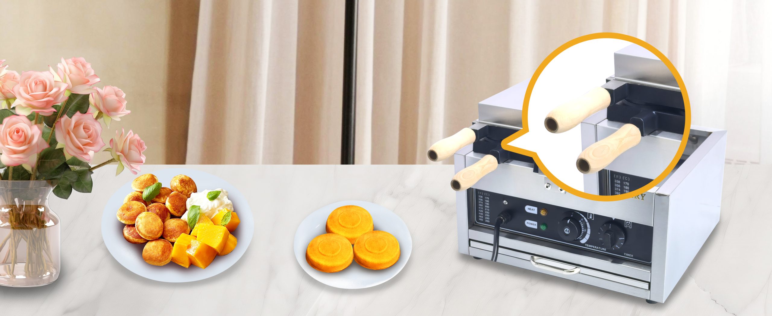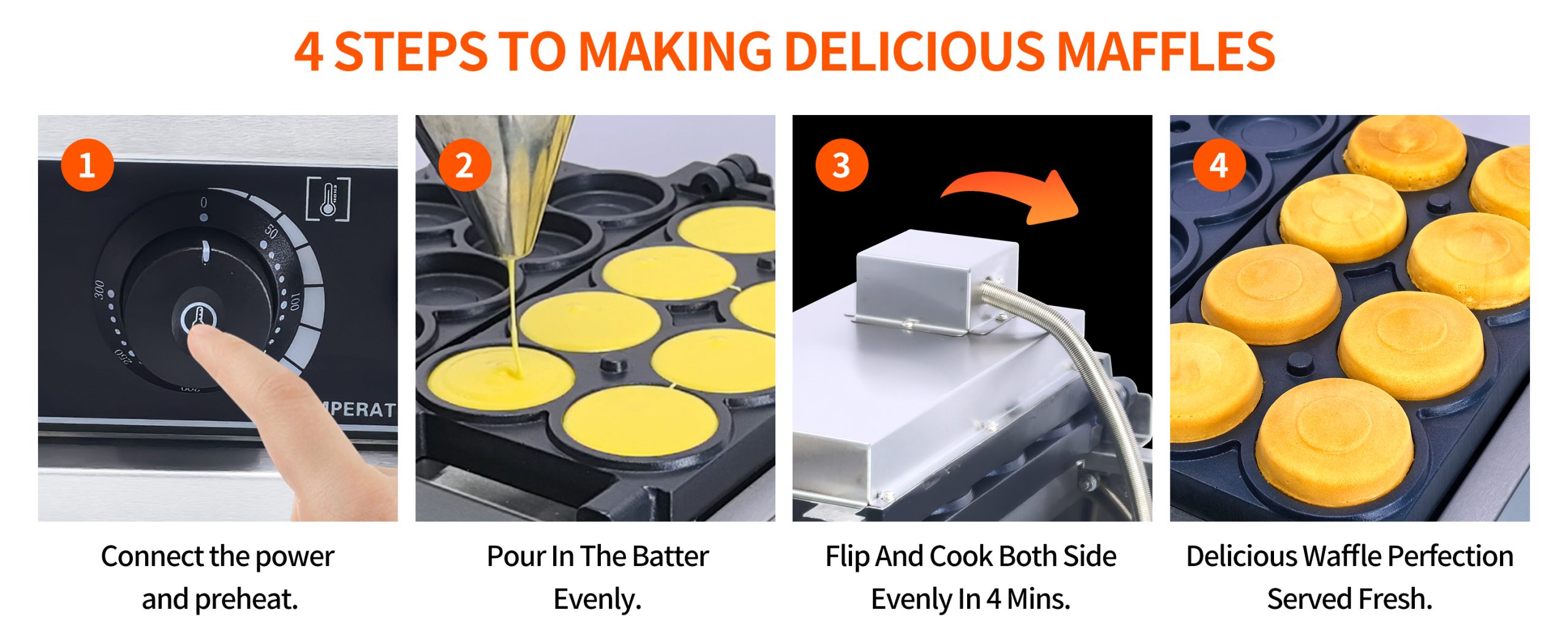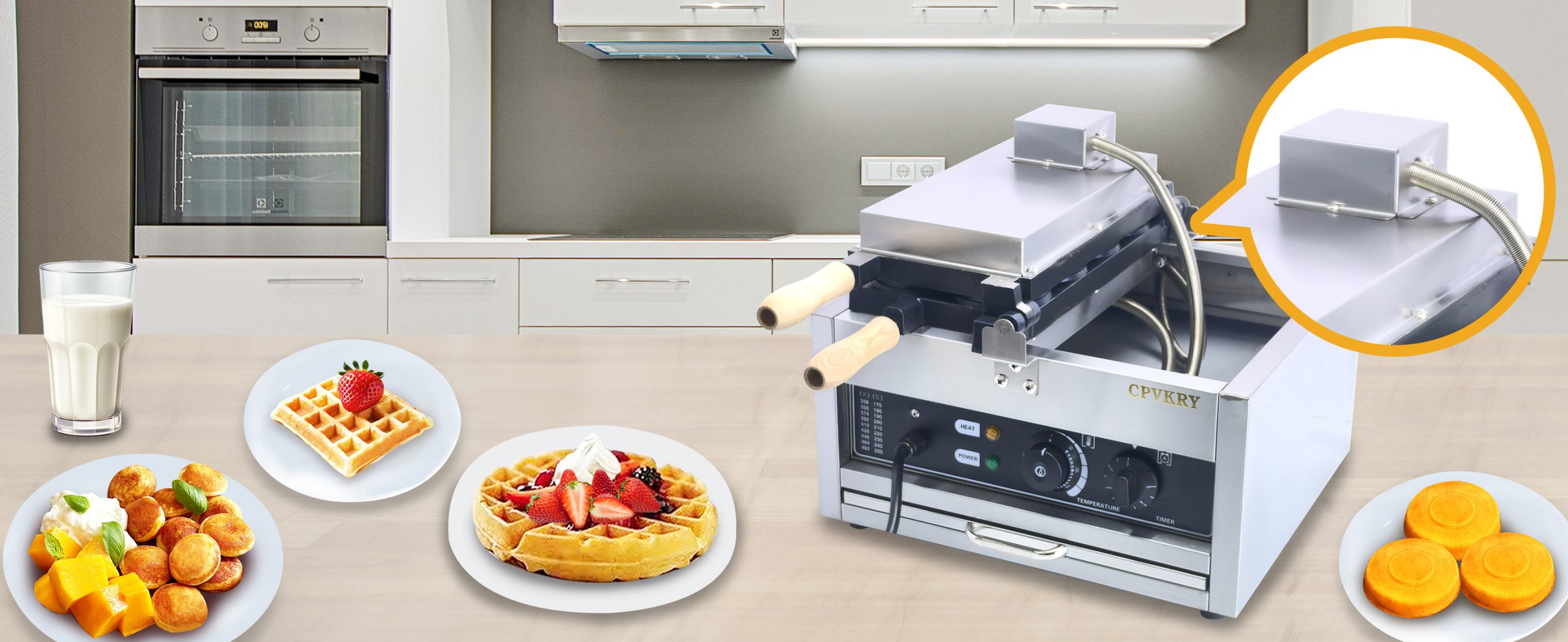 Baking delicious American coin shaped waffles. This commercial grade waffle machine is getting extremely popular all over the world because of its high efficiency and excellent results. Baking tasty jam or ice cream waffles with independent heat control extremely easy.